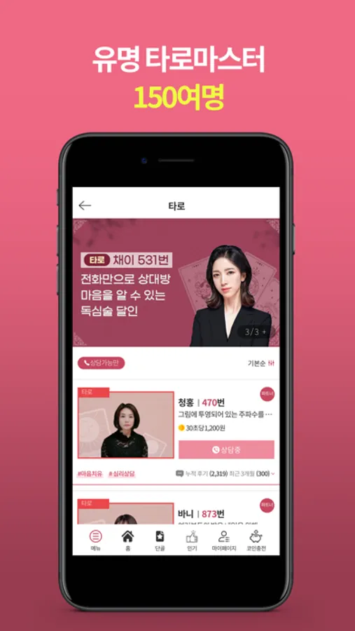 -대한민국에서 내노라하는 최고의 타로마스터, 술사, 무당, 도사, 퇴마사님만을 섭외했습니다.