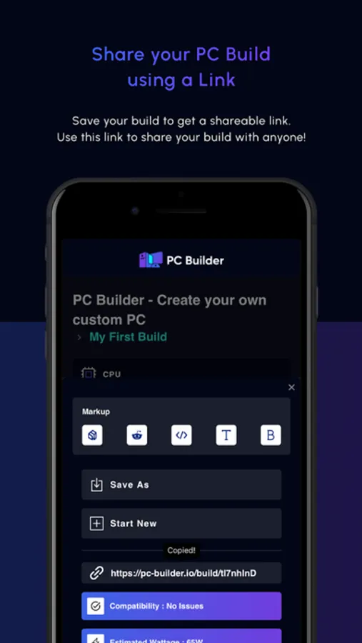 - Shareable Link: Once you’ve saved your PC build, you can get a shareable link to share your PC build with others.