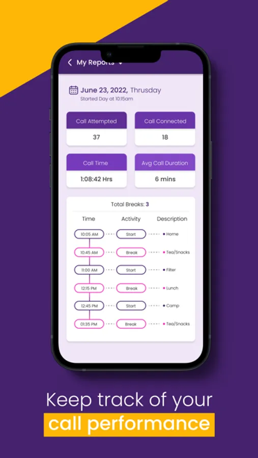 Know what and how your telecallers are doing through real-time reporting. Get call analytics and break notifications - drive higher levels of productivity and optimise your work day.
