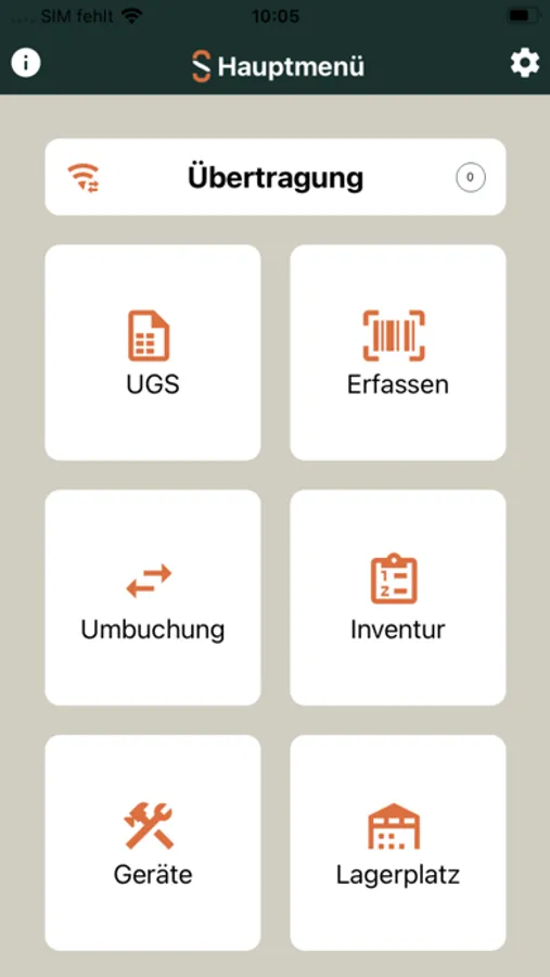 · Einstellungsmenü mit Optionen wie beispielsweise Standardlager, oder Benutzerkennung