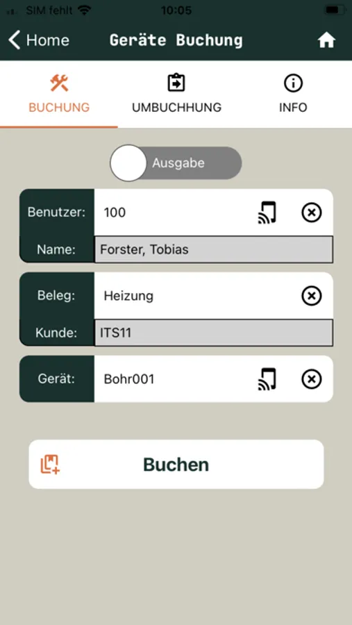 Mit ihr kann mit Hilfe von selbstklebenden NFC-Tags eine vorgangsbezogene, mobile Gerätebuchung und –Rückgabe erfolgen, welche dann in der KWP Geräteverwaltung sichtbar ist.