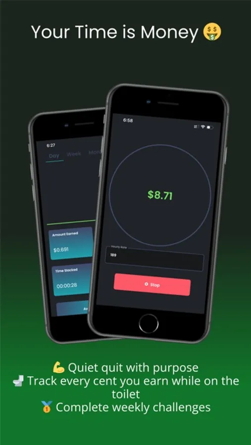 Quiet Quitter is a timer and tracker for your money. We take your pay, calculate your effective hourly rate, and let you track every cent you spend not working.