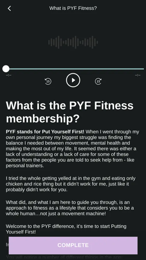 Learn to Put Yourself First and balance Movement, Mental Health & Making the Most out of Life with PYF Fitness the app!
