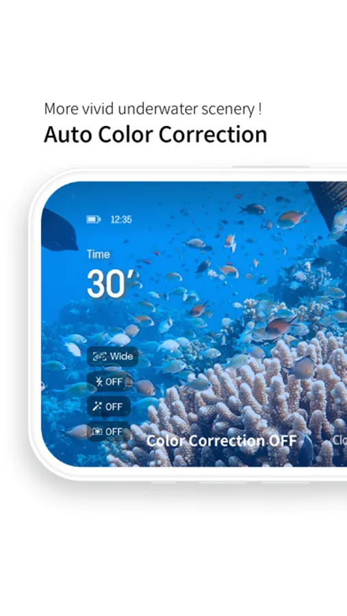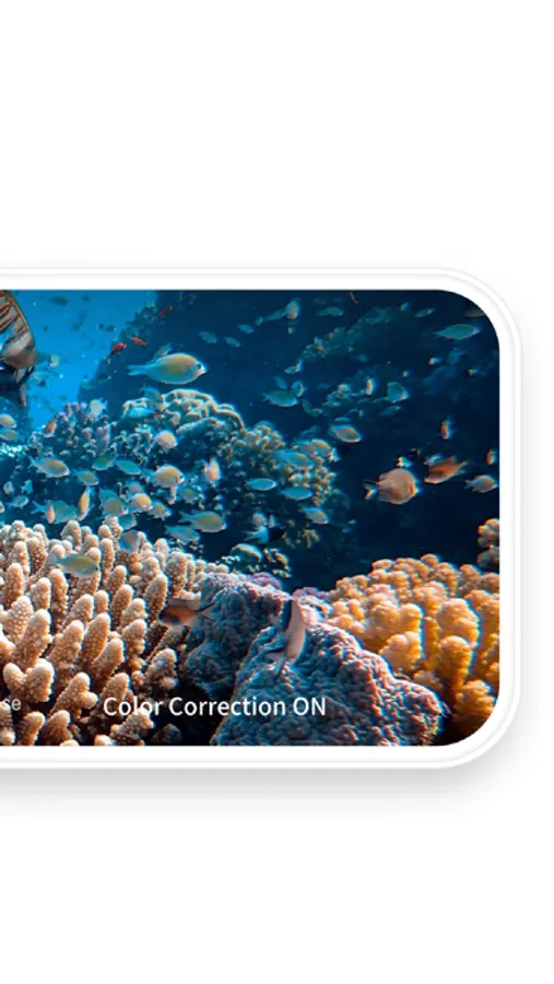 Auto color correction is available underwater in real-time during snorkleling/freediving.