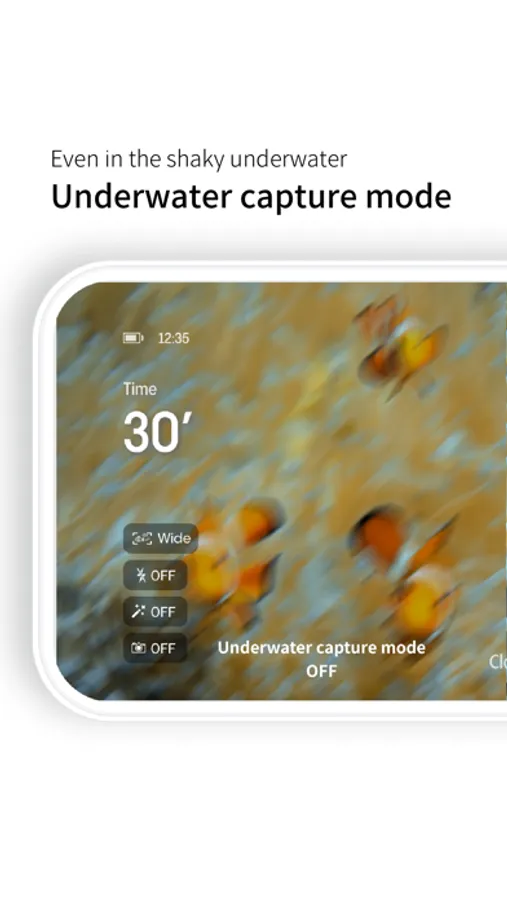 Shooting in an underwater environment is not easy because the surroundings are dark and often shaken by current. Underwater Capture Mode raises image stabilization, giving you impossibly clear and smooth image/videos no matter how shaky it gets underwater.