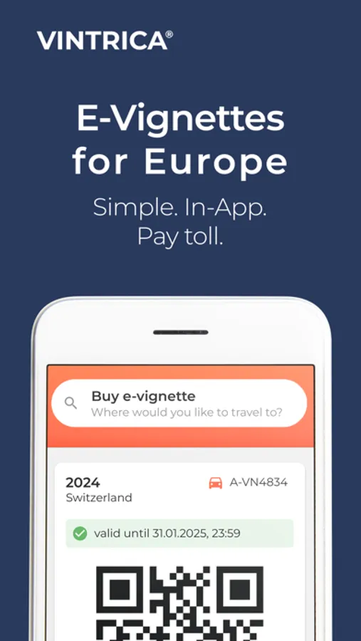 With the vintrica.com vignette app you can easily buy and manage your e-vignettes – fully digital, no need to print.