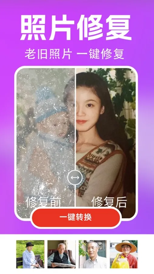 珍贵的老照片却由于时间久远变得模糊不清,使用照片修复功能,就可以自动修复照片使其清晰度提高,完美还原其本来面貌。