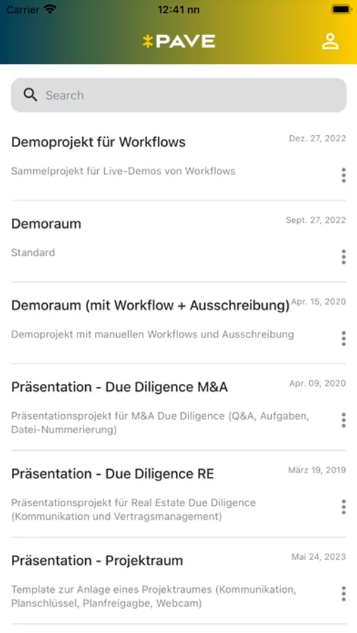 Um die App nutzen zu können, müssen Sie Zugriff auf mindestens ein Projekt in PAVE haben.