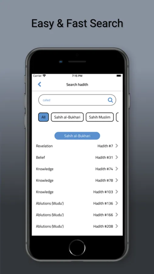 • بحث سهل وسريع في بعض أو كل الآحاديث.