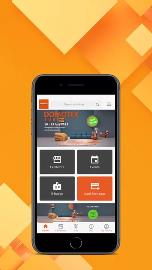 Providing access to DOMOTEX Turkey Exhibition information held at ANFAS Expo Center in Antalya,Türkiye, the app offers a unique fair experience with superior features such as detailed exhibitor search, event calendar and electronic badge.