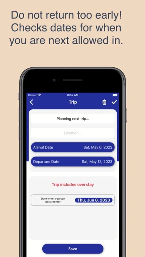 - Each Trip will show details on Days Used, Days Left, Date when you can reenter, and more...