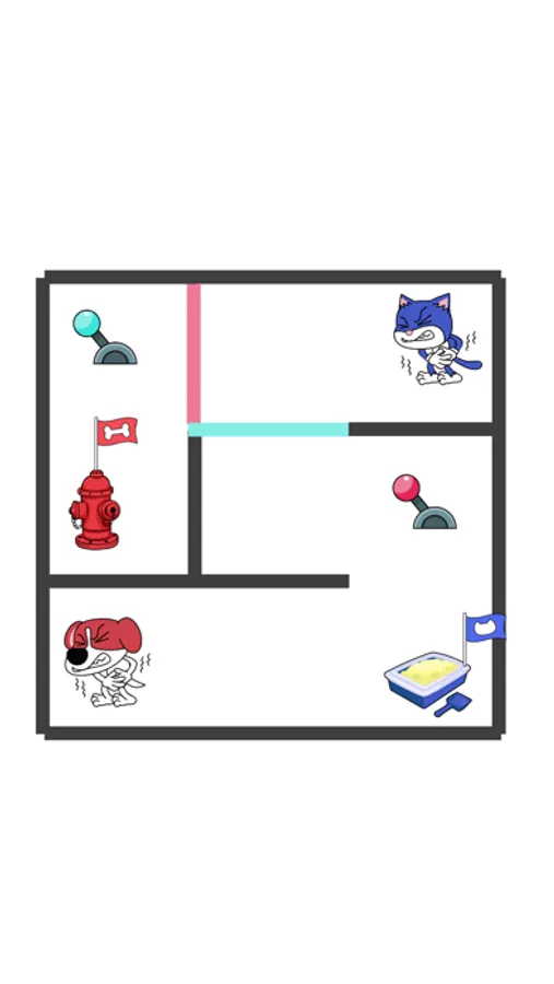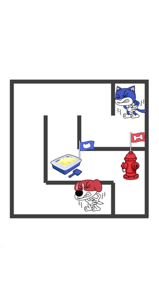 Slide your finger to draw the path that helps your favorite pets find their way through the maze. Can you guide both the cat and the dog to the right path and reach the toilet on time? Challenge yourself against time and help them get to the toilet before the time runs out.