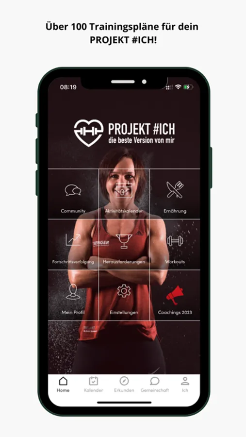Mit der PROJEKT #ICH Fitness App hast du deinen Personal Trainer im Wohnzimmer. Du hast Zugriff auf mehr als 100 Trainingspläne für zuhause und das Fitnessstudio! Tracke deine Ernährung und verfolge dein persönliches Ziel!