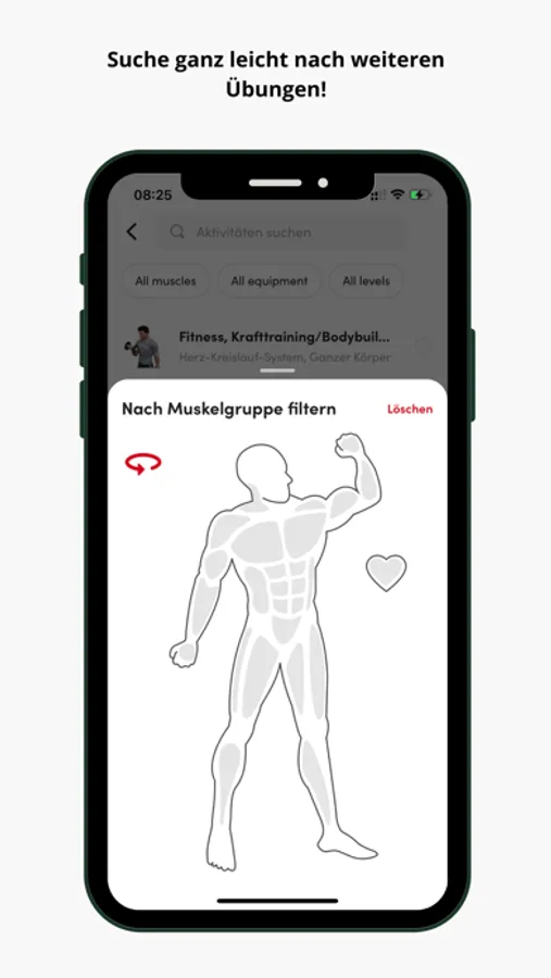 Sie können diese App mit der Apple Health App synchronisieren. Wenn Sie diese Übertragung aktivieren, wird jedes Training aus der Health App automatisch zu Ihrem Aktivitätskalender hinzugefügt.