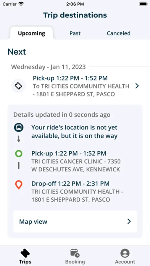 • View upcoming and completed trips, easily cancel trips