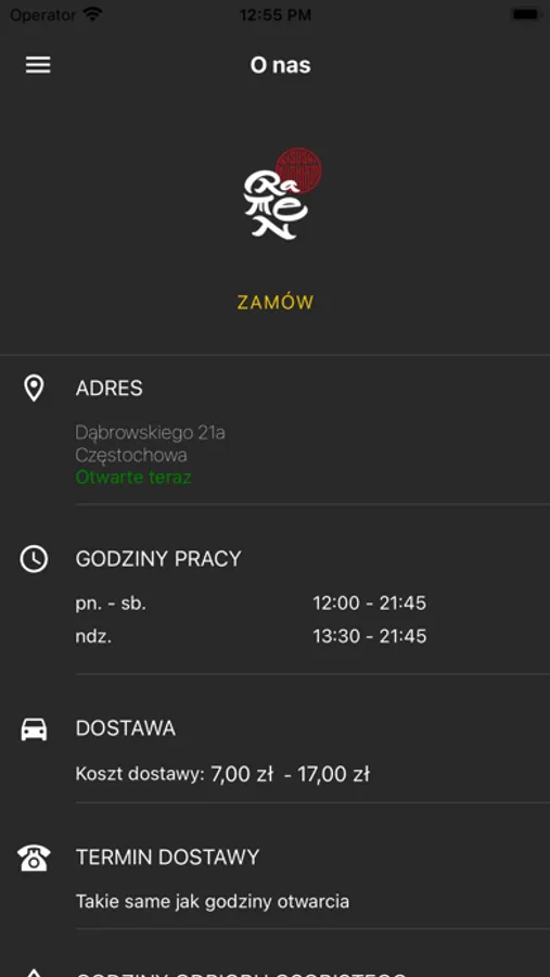 Oprócz zamawiania online aplikacja pozwala sprawdzić: