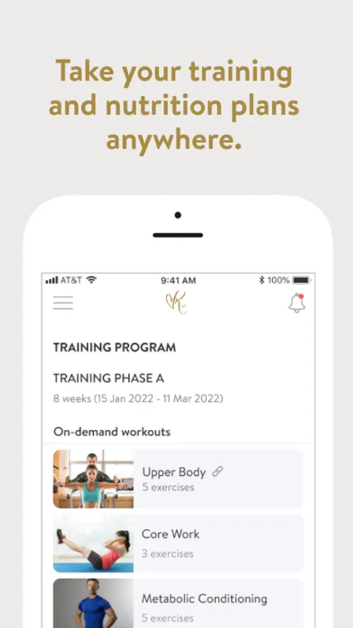 With the Team kfit App, you will have access to workout and nutrition programs designed specifically to help you reach your fitness and wellness goals! You can follow & track your workouts, your nutrition, your lifestyle habits, measurements and results–all with the help of your coach.