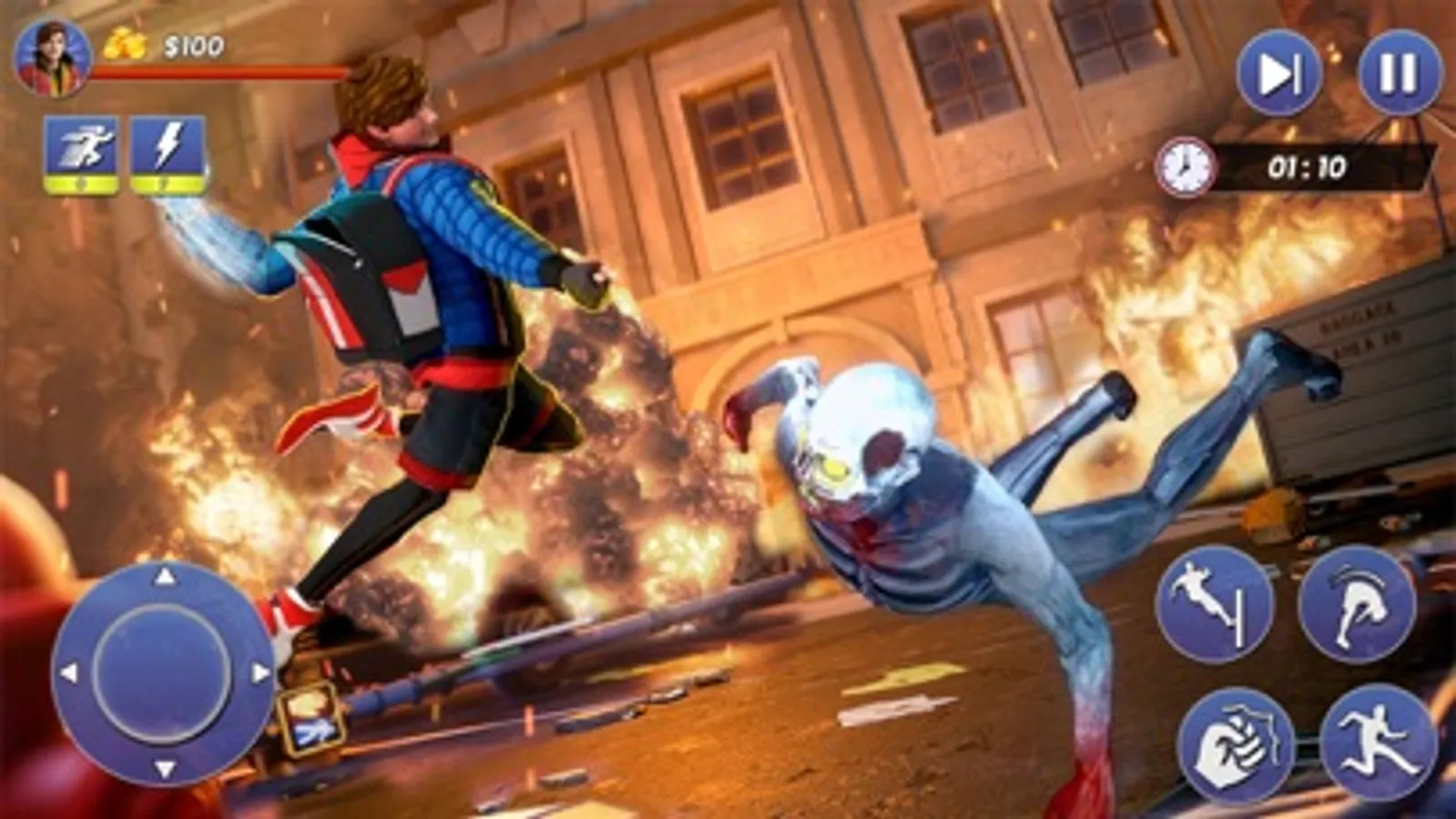 If you are a superhero lover then play this thrilling action-packed game and will enjoy multiple fighting scenes. You will real-time experience as a hero and will fight with your enemies to save themselves from their superpowers. You will fly and climb on the high sky buildings of the city with the help of your web. As a hero, you will perform multiple stunning tasks like a rescue the people, fight with gangsters and saving the lives of civilians from criminal gangs. The police do not control on city crimes, then they will get help from the flying hero. He will end all crimes, kill gangsters and save the city from a big destruction. You will save yourself from enemies and cleverly attack on them to finish them. After some time, you will see that some people that are stuck in a flaming building. Then you reached out to the incident location and rescued all the civilians in a safe place. The flying hero has multiple skills like jumping, landing and moving from one building to another with the help of power. Enjoy multiple selections of superheroes, so you will select your favourite character and experience it as a flying hero in this game. Smooth and easy gameplay and totally improved graphics of the game.