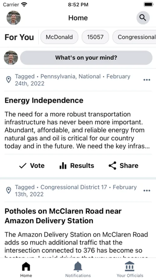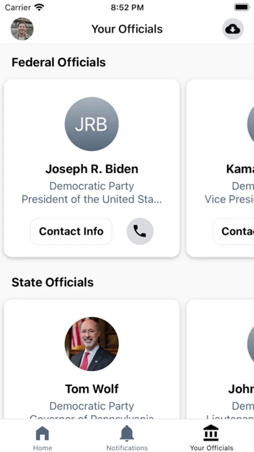 - We provide you with your latest civic information provided by the Civic Information API including your local, state, and federal officials.