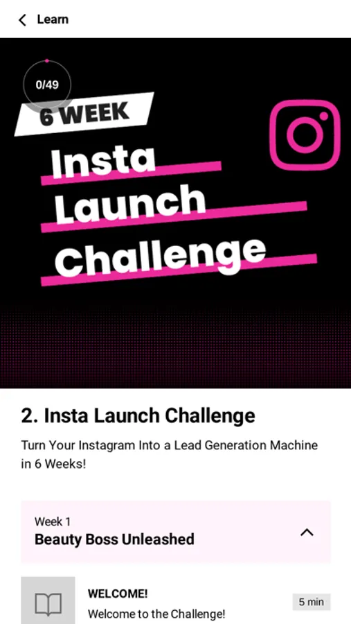 A 6-Week Insta Launch Challenge to set up your Social Media into a lead generation machine so that you have limitless leads to crush your Seminar goals with a completely virtual business!