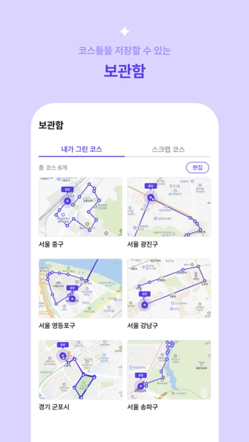 스크랩했던 공유 코스를 관리할 수 있어요.
