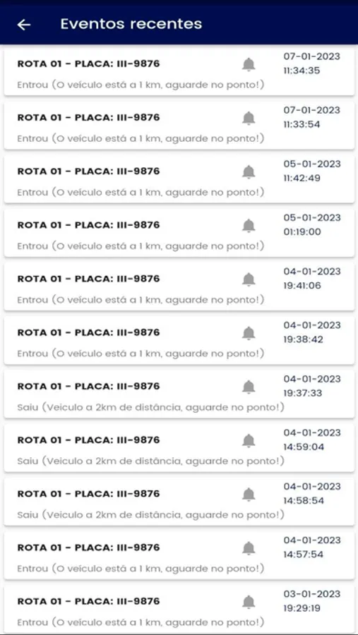 Receba alertas de aproximação geográfica do veículo ao ponto de embarque.
