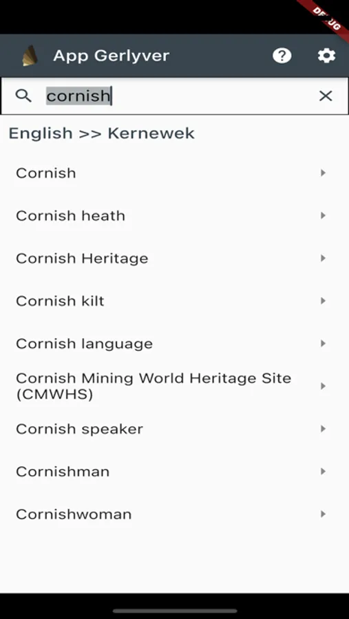 The App Gerlyver allows you to search the Gerlyver an Akademi Kernewek dictionary, as well as to standardized terminology, from mobile devices.
