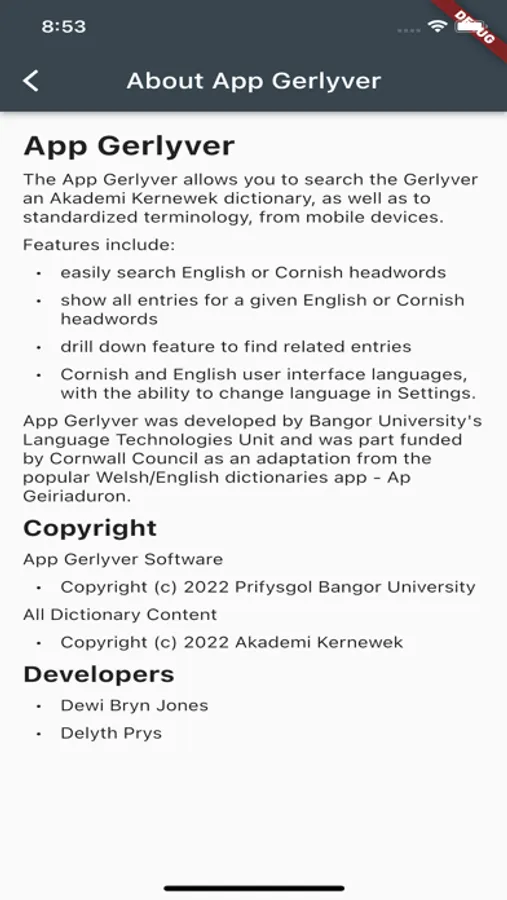 App Gerlyver was developed by Bangor University's Language Technologies Unit and was part funded by Cornwall Council.