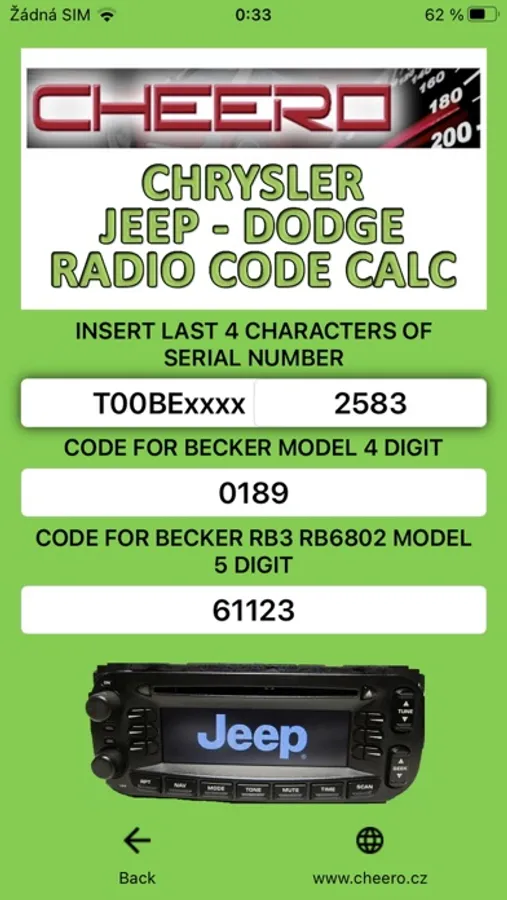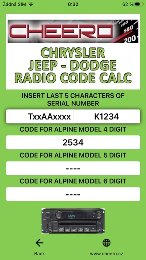 It is an unlimited decoding tool for finding out the car radio and navigation CODE for CHRYSLER JEEP DODGE !!!