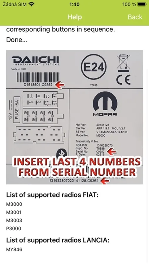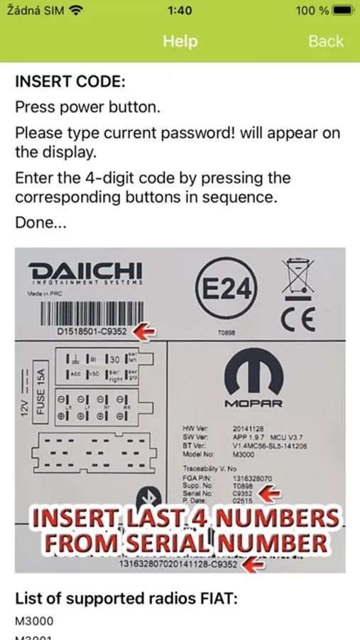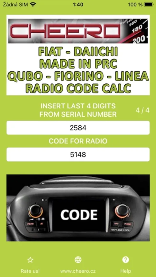 Calc CODE for RADIO and NAVI - FIAT DAIICHI for FIAT QUBO FIORINO PUNTO DUCATO LINEA for LANCIA YPSILON - all radios Made in PRC.