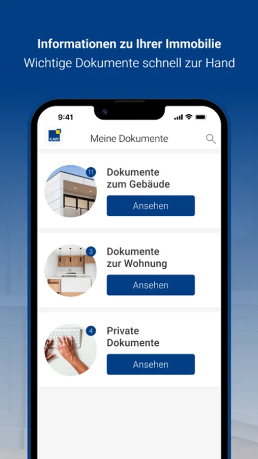 - Schnelle und effiziente Kommunikation: In unserer KAW App finden Sie alle Informationen und Dokumentationen an einem Ort gebündelt – in Ihrer Hosentasche und jederzeit digital verfügbar