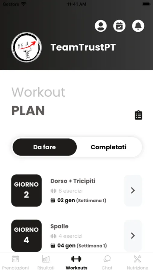 • Consultare il tuo programma tenendo traccia degli allenamenti completati e quelli da fare.