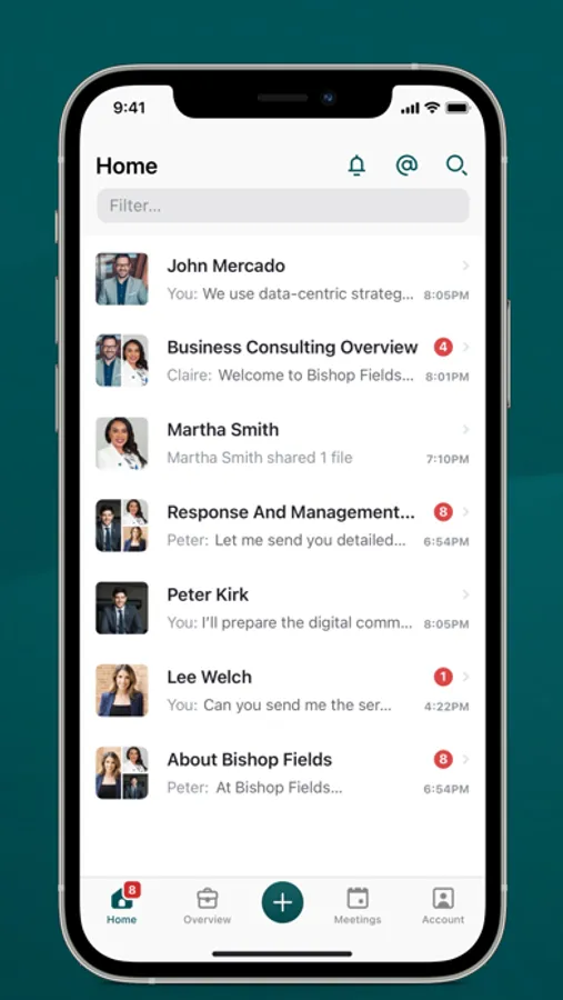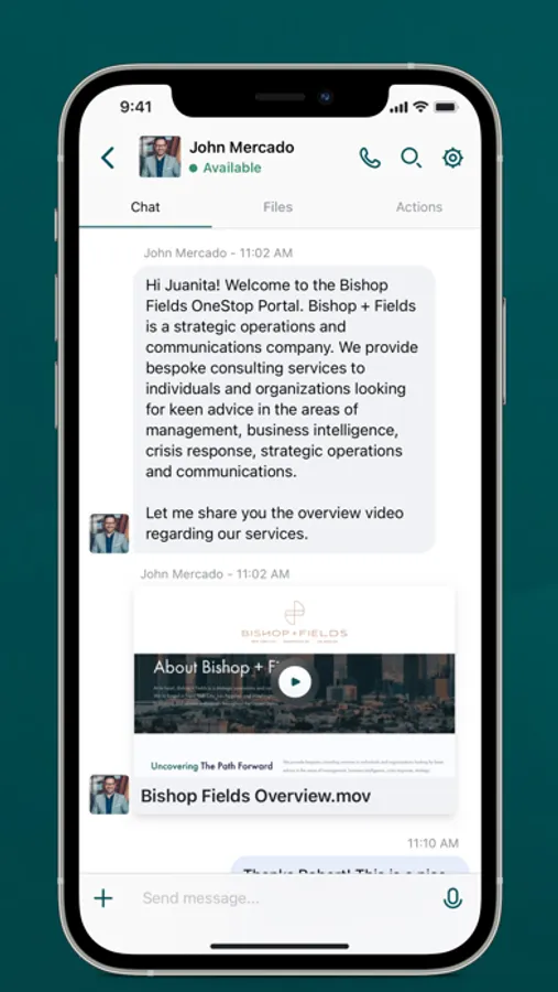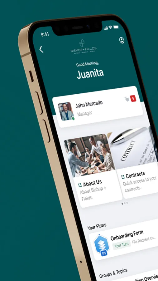 Use the Bishop + Fields Hub to schedule meetings, communicate with your Pathfinder, share documents, and stay up to date on timelines and due dates. With interactive capabilities such as secure chat messaging, video conferencing, file sharing, digital signature, client workspaces, and more — the Bishop + Fields app streamlines strategic operations from start to finish.