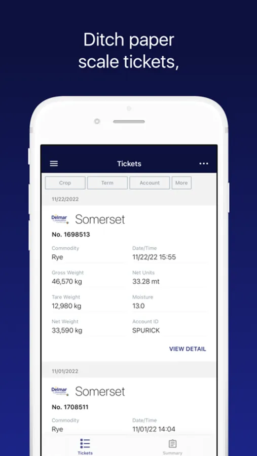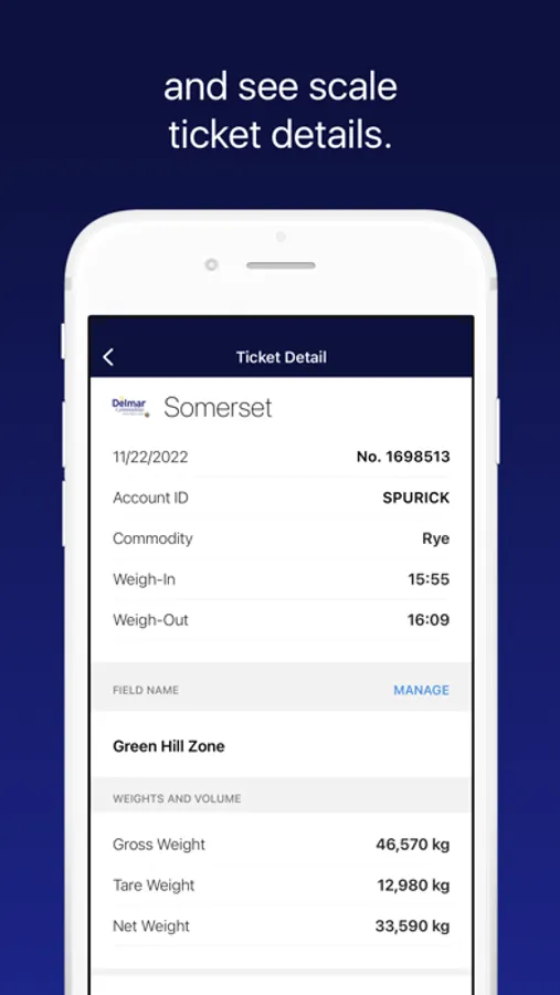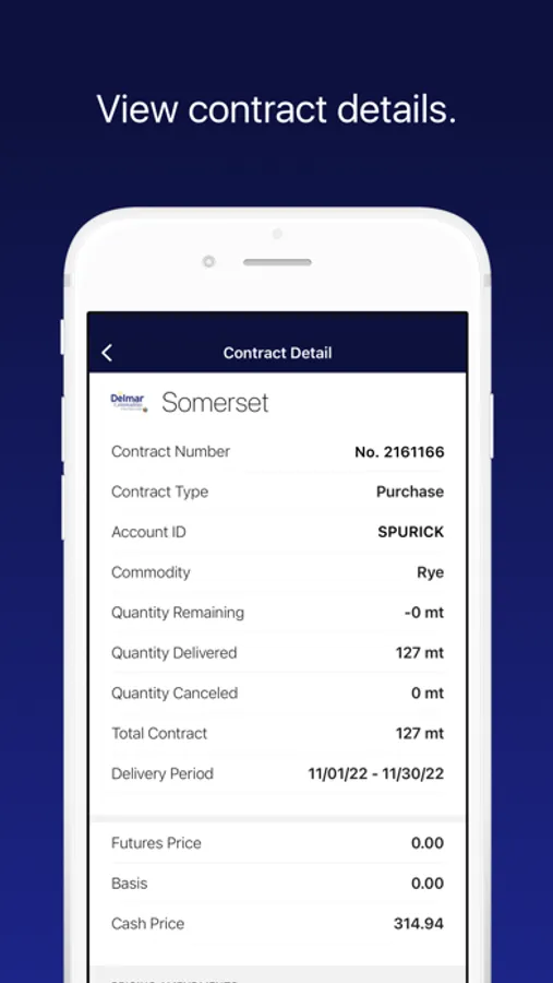 The Delmar Commodities app is an essential mobile solution that connects your operation to your grain facility, providing real-time, actionable information to help you manage and grow your business.