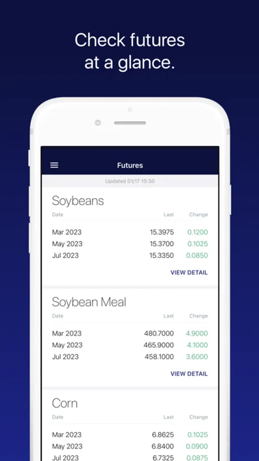 With a robust toolset that's constantly evolving to meet the demands of the modern grower, your Delmar Commodities app is built with powerful features to help you save time and maximize profits, including: