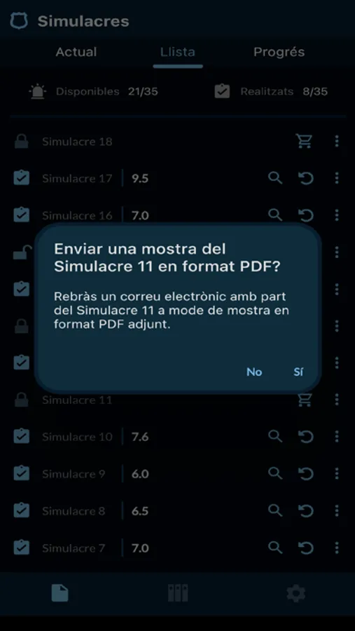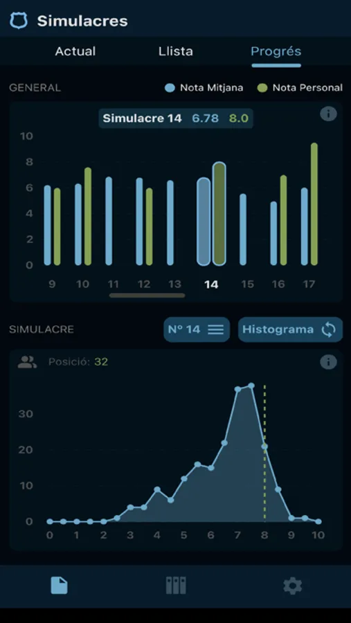 - Disposaràs d’un seguiment del teu progrés en simulacres a partir d’un gràfic.
