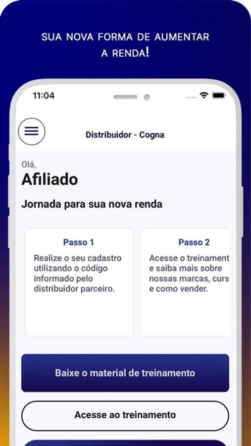Afilie-se a um de nossos parceiros distribuidores e faça seu cadastro no APP gratuitamente.