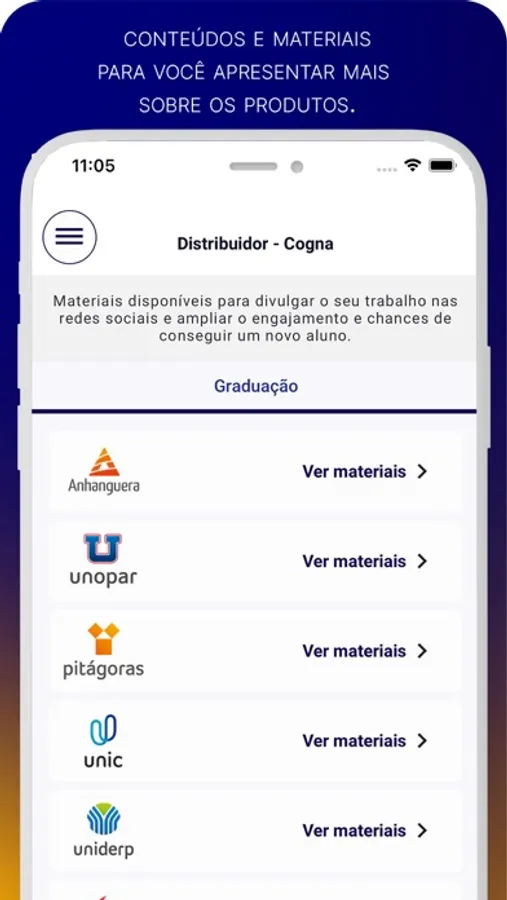 Nossos afiliados podem vender os cursos do portfólio do Grupo Cogna e trabalhar com marcas renomadas como Anhanguera e Unopar em todo o território nacional, além de um vasto portfólio de produtos para venda, como, graduação, Pós-graduação, EJA e muito mais.