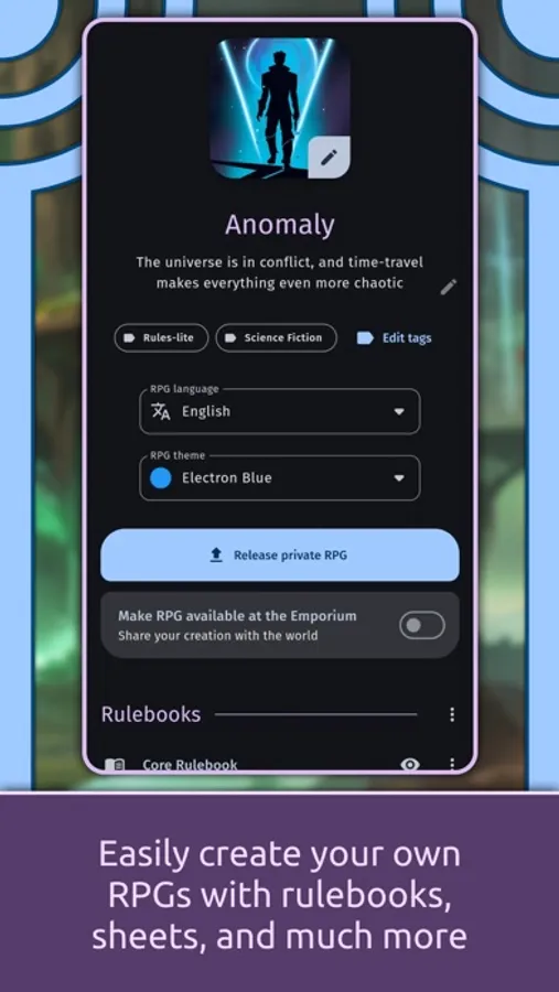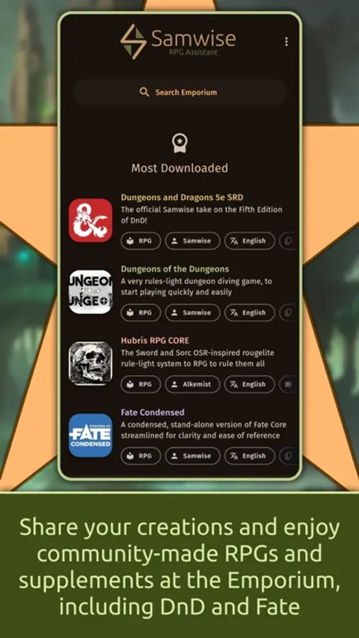 And if you want to jump straight into an adventure, use the Emporium to download RPGs and supplements from the community, including DnD and Fate.