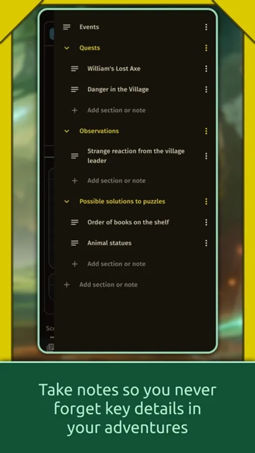 Capture ideas, plans, character insights, and more throughout your adventures, ditching paper and physical clutter.