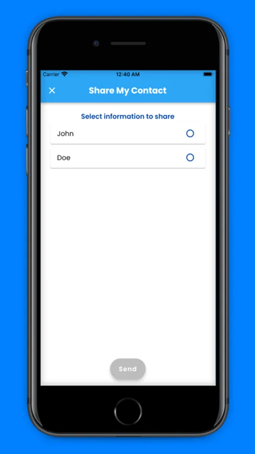 Checkmark allows users to choose what information they want to share during contact information exchange.