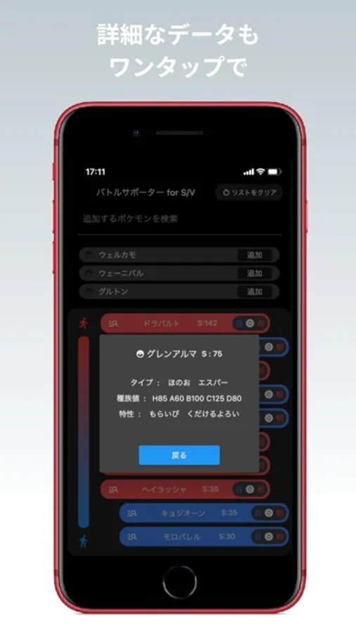 リストに追加したポケモンの詳細な情報をワンタップで表示することができます。