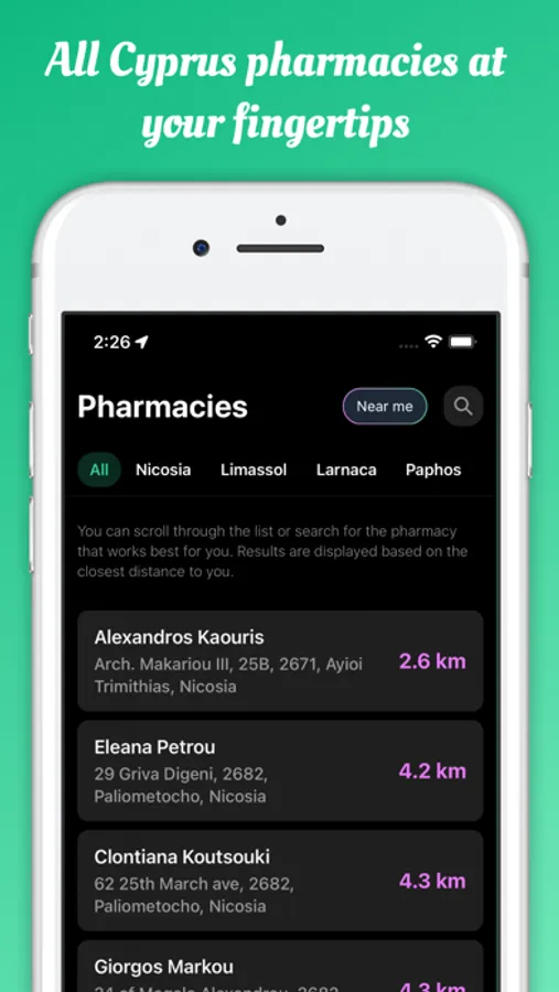 Find and navigate quickly to pharmacies in Cyprus, create checklists, and more.