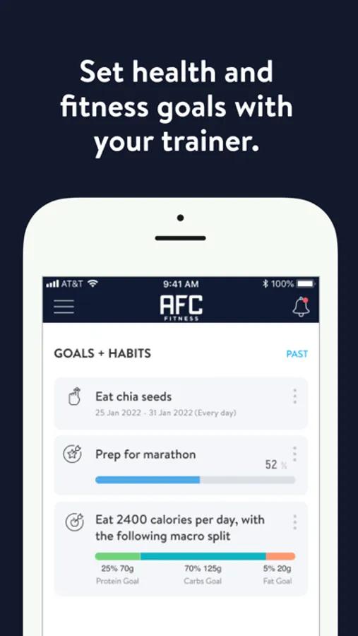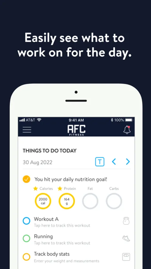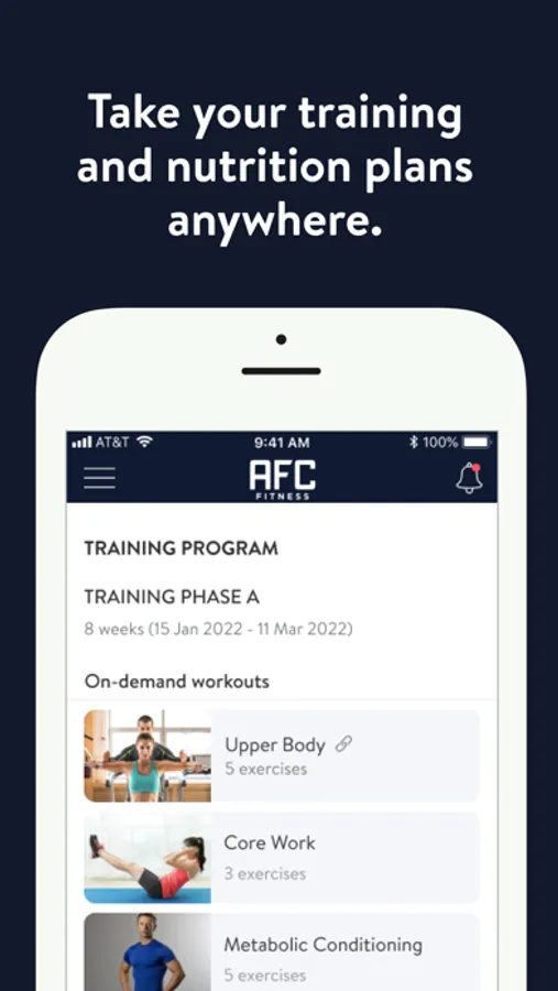 With the AFC Fitness app, you can start tracking your workouts and meals, measuring results, and achieving your fitness goals.