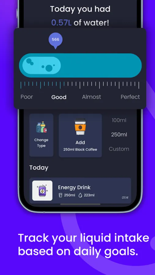 [>] Intelligent Hydration Monitoring – Personalize your water intake with an array of beverages and custom quantities. With FitWay's hydration tracking, reap the benefits of expert analysis, detailed reports, and bespoke tips for optimal hydration.