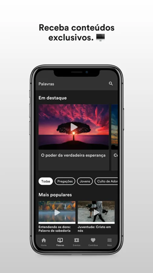 - Siga a agenda e fique por dentro de tudo que acontece na igreja, inscreva-se em eventos e tenha seus ingressos sempre com você.