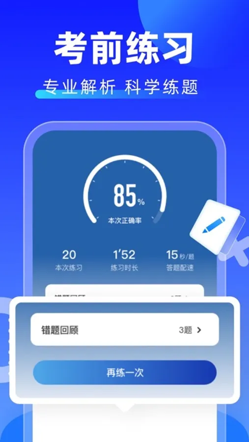 考前练习:结合大数据出题,涵盖小车、客车、货车、摩托车,全国各地区题库实时更新。