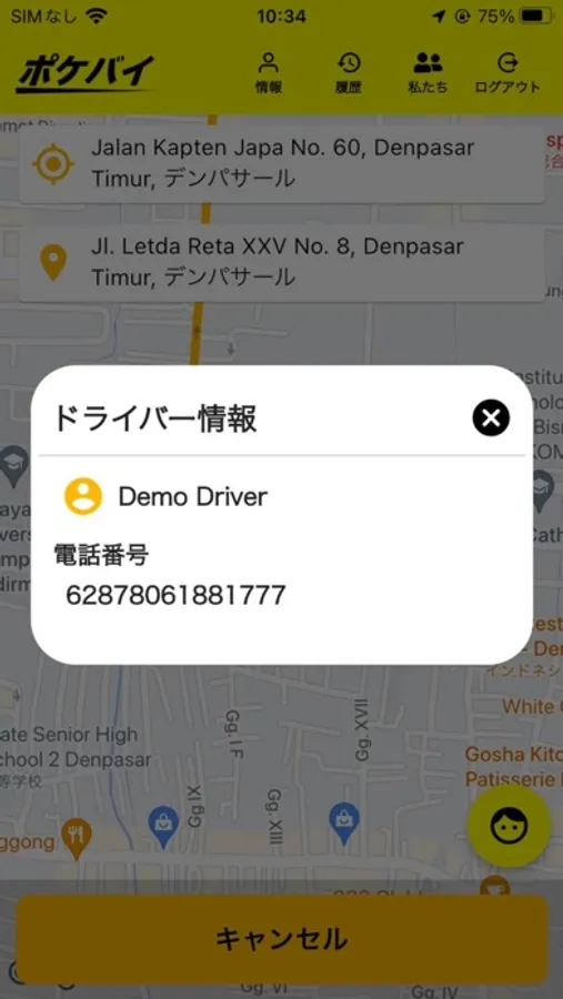 お車を駐車している場所からお帰り先のポイントを指定し依頼をすることで、ドライバーとマッチングができます。