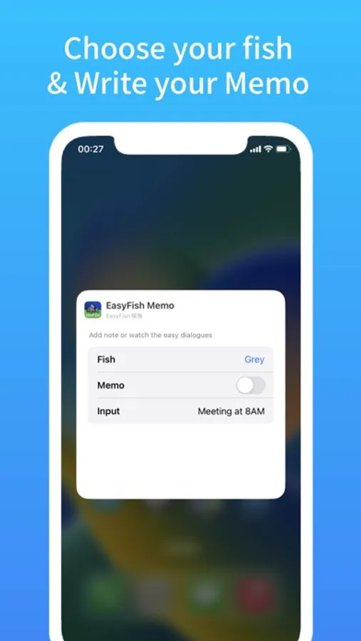 EasyFish offers three different sizes of widgets to let you have a mini fish tank on the device’s home screen. The small and medium-sized widget has clock and fish animation. The large-size widget can display built-in funny dialogues or note that you input from the widget configuration.