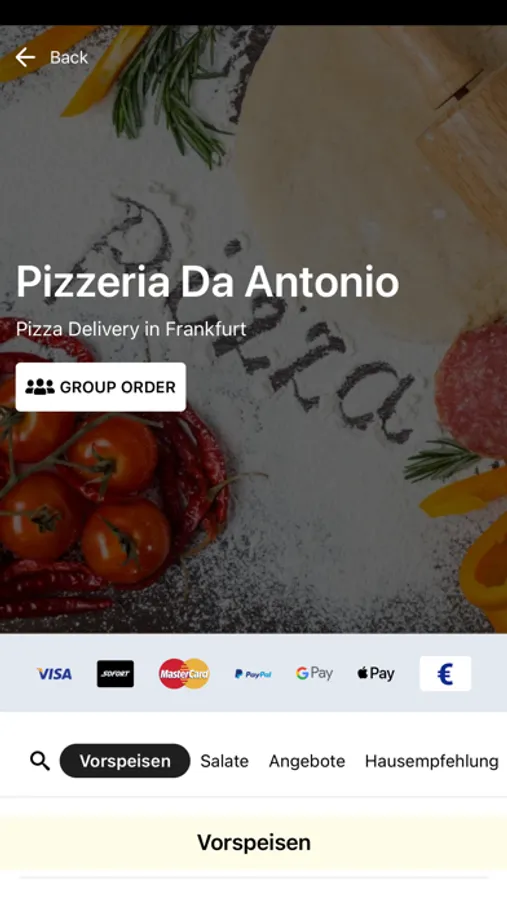 Mit der Pizzeria Da Antonio Frankfurt Mobile App können leckeres Gericht bequem von zu Hause aus genießen. Stöbern Sie in unserer Speisekarte, wählen Sie die Gerichte aus, die Ihnen schmecken, und geben Sie Ihre Bestellung in Sekundenschnelle auf.